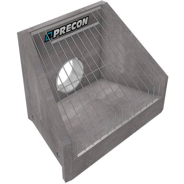 Precon’s Flared Headwalls offer a cost-effective alternative to a cast-in-place structures for connecting pipework discharging into open watercourses such as rivers, ditches, ponds, and swales. The Headwalls also control erosion and scour resulting from excessive velocities and turbulence. Because these Headwalls are precast, they allow contractors to quickly complete pipe runs without extending time spent in environmentally sensitive areas and preventing the requirement of using the costly cast-in-place option. Headwalls can be customized; see upgrades.